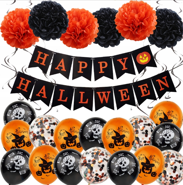 Dynia to konieczny rekwizyt podczas każdej nocy Halloween. Dynie są obecne wszędzie- na stołach, ścianach, parapetach i przy drzwiach wejściowych. Bez tej upiornej pomarańczowej postaci święto Halloween nie miałoby sensu. I my zadbaliśmy o ten symbol, wykorzystując go do powstania wielu gadżetów i dekoracji wnętrza sali, w której organizowane będzie przyjęcie. Jedną z fantastycznych i oryginalnych ozdób jest girlanda na Halloween wykonana w całości z papieru. Rekwizyt jest mocowany na sznureczku, co umożliwia łatwe i szybkie umieszczenie go w wybranym miejscu.